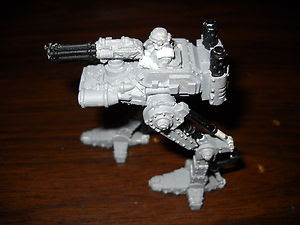 If I thought the ancient sentinel was a homely piece of work words escape me when I try to wax loquacious on the metal chaos dreadnought. If 40k had anything that compared to the fantasy "majesty" of Nagash it was this this. I'm only mentioning this because it relates to the next indignity inflicted on this poor sentinel. Both of It's legs were sacrificed so that a less ugly dreadnought might live. Unfortunately I don't have a photo because it recently was cannibalized for a return to the imperial fold. Somewhere along the way parts of the left left were MIA so it is currently sporting a scratch-built prosthetic.